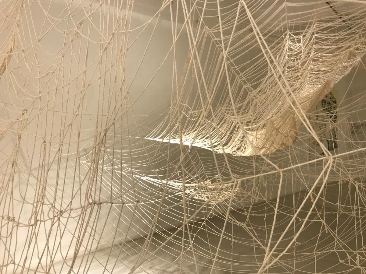 이우수 작가는 어린 시절 관계의 긍정적인 느낌에서 현재 느끼는 복잡 미묘한 관계의 변화를 얽히고 묶이고 때론 풀리기도 하는 실을 이용한 설치작품으로 표현한다.